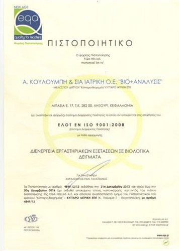Το Μικροβιολογικό – Βιοπαθολογικό Εργαστήριο ΒιοAνάλυσις, έχει καθιερωθεί στην συνείδηση των κατοίκων της Ζακύνθου και της Κεφαλονιάς , για την πληρότητα των παρεχομένων υπηρεσιών Πρωτοβάθμιας Φροντίδας Υγείας. Η ΒιοAνάλυσις διαθέτει προσωπικό με υψηλή επιστημονική κατάρτιση, σύγχρονο τεχνολογικό εξοπλισμό και συνεχή και αυστηρή εφαρμογή μεθόδων Ποιοτικού Ελέγχου(Quality Control) σύμφωνα με τα Διεθνή Πρότυπα. Η άριστη επιστημονική κατάρτιση, το βαθύ αίσθημα ευθύνης και ο σεβασμός στην φροντίδα του εξεταζομένου χαρακτηρίζουν το προσωπικό της.